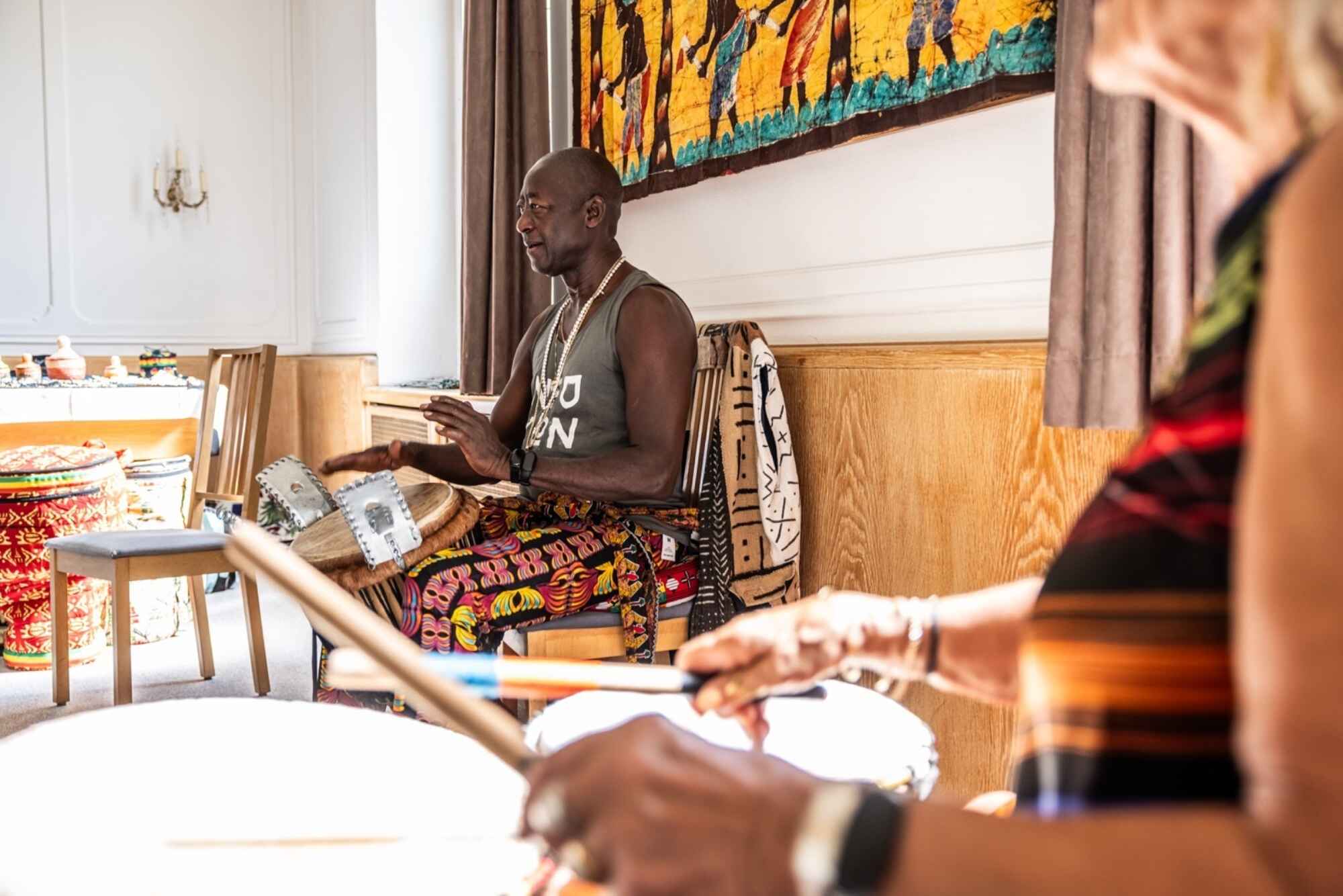 Jeder Teilnehmende benötigt eine Djémbé (CHF 50 Miete in Kursgebühr inbegriffen).