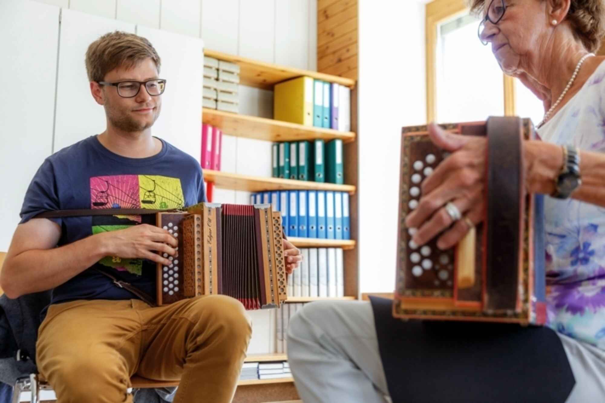 26 Juli – 1 Aug. 2026 zu Favoriten hinzufügen von Favoriten entfernenInstrumentalkurse VolksmusikLeitung Thomas Aeschbacher (Schwyzerörgeli) Dominik Flückiger (Schwyzerörgeli) Adrian Gehri (Schwyzerörgeli) Daniel Häusler (Klarinette, Saxophon) Madlaina Küng (Kontrabass) Simon Lüthi (Akkordeon)ThemaVertiefen seiner eigenen Spielkultur, praktisch und theoretisch; Vernetzung von verschiedenen volksmusikalischen Themen. Gemeinsam musizieren. Dieser Kurs findet in Kombination mit Akkordeon, Kontrabass, Klarinette, Hackbrett und Schwyzerörgeli statt. Es wird auch gemeinsam musiziert. Abends jeweils spontane Stubete-Sessions.ZielgruppeBeginner (mind. 1 Jahr Spielerfahrung), fortgeschrittene Amateure, Studierende und Berufsmusiker:innenUnterrichtsspracheDeutschUnterrichtsformEinzelunterricht, Gruppenunterricht, praxisangewandtes SpielenDetailsBitte bei der Anmeldung vermerken, mit welchem Instrument am Kurs teilgenommen wird! HINWEIS: Eine aktive Teilnahme ist nur mit 1 Instrument möglich.Weitere Infos Instrumentalkurse Volksmusik (PDF)