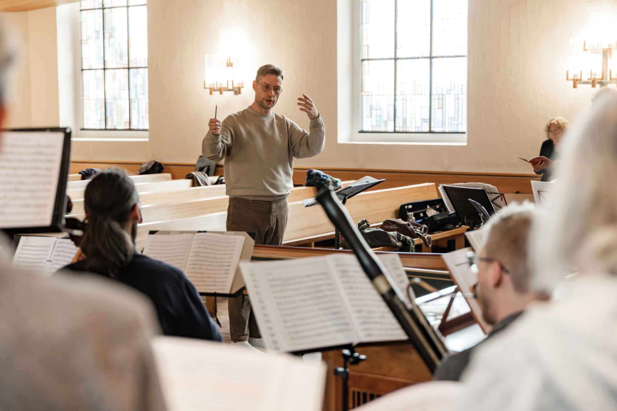 Klein besetzte Ensemble- und Arienproben und Chorproben mit den Gesangsstimmen, getrennte und gemeinsame Orchesterproben mit den Orchestermitgliedern sowie Einzelunterricht für Sänger:innen mit dem Vocal Coach.