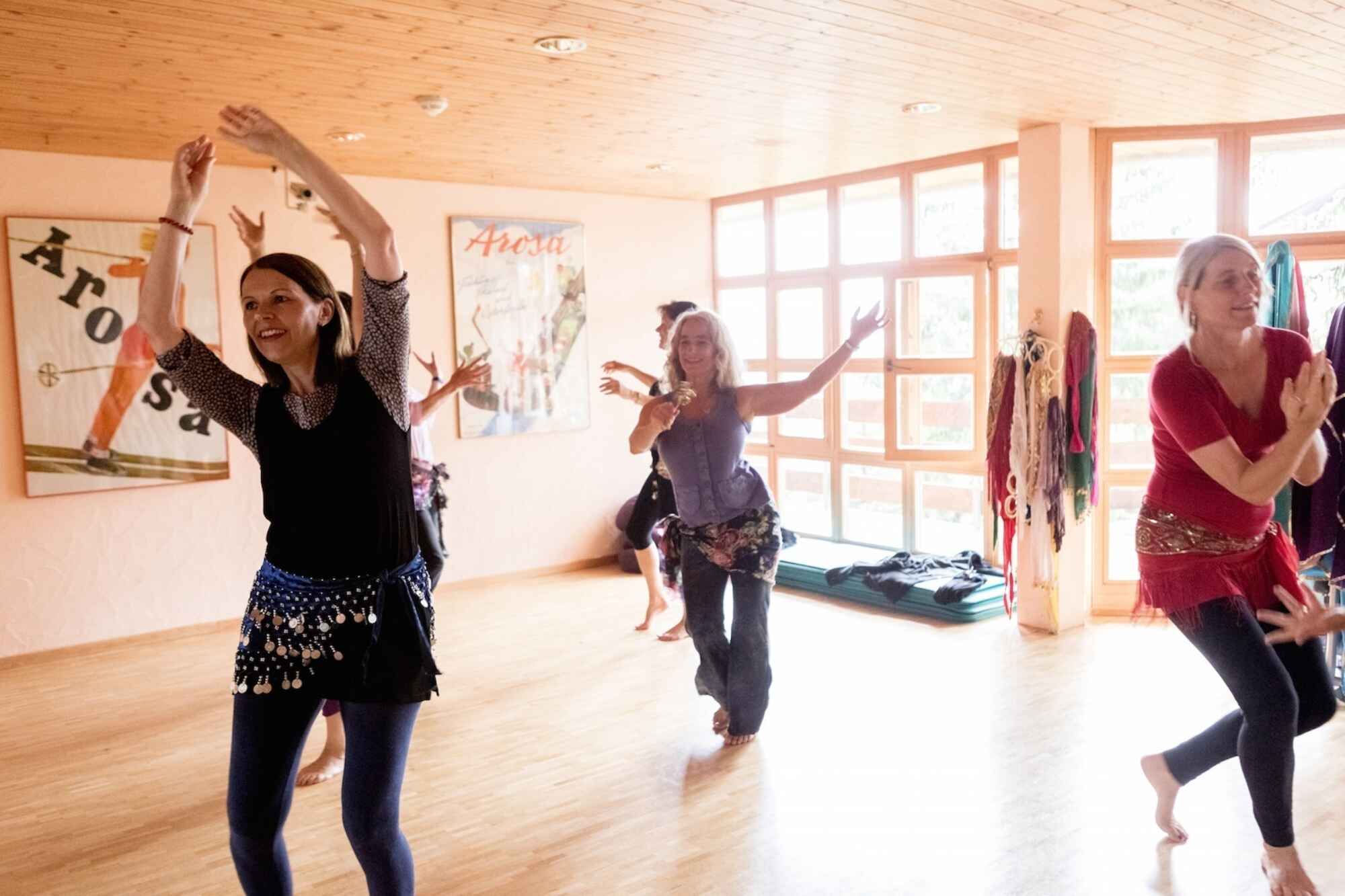 Orientalische Tanztechnik, freier Ausdruck und Spiraldynamik® sind die Basis.