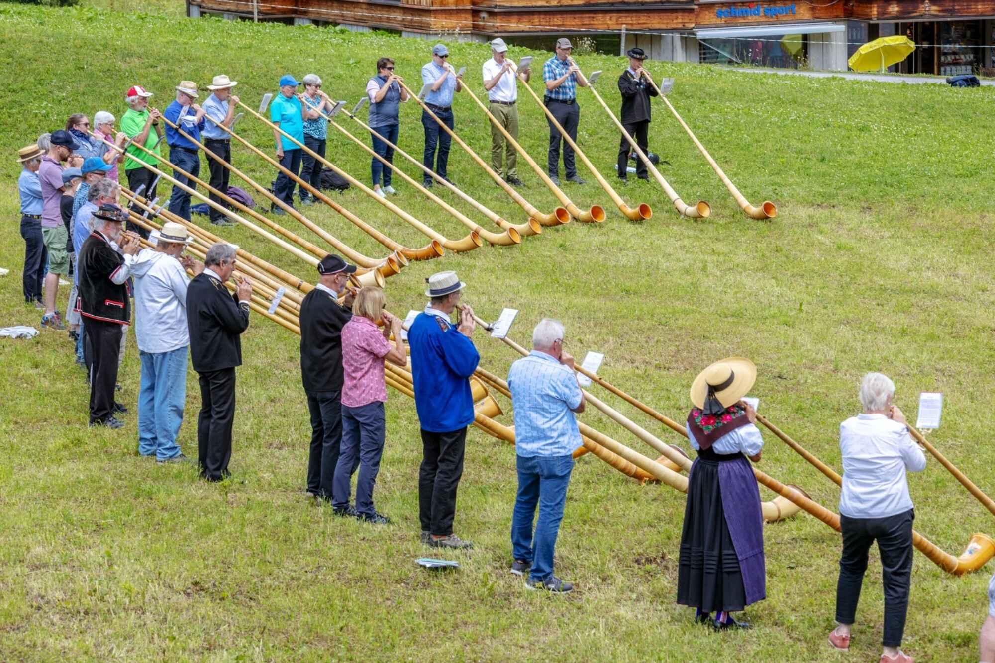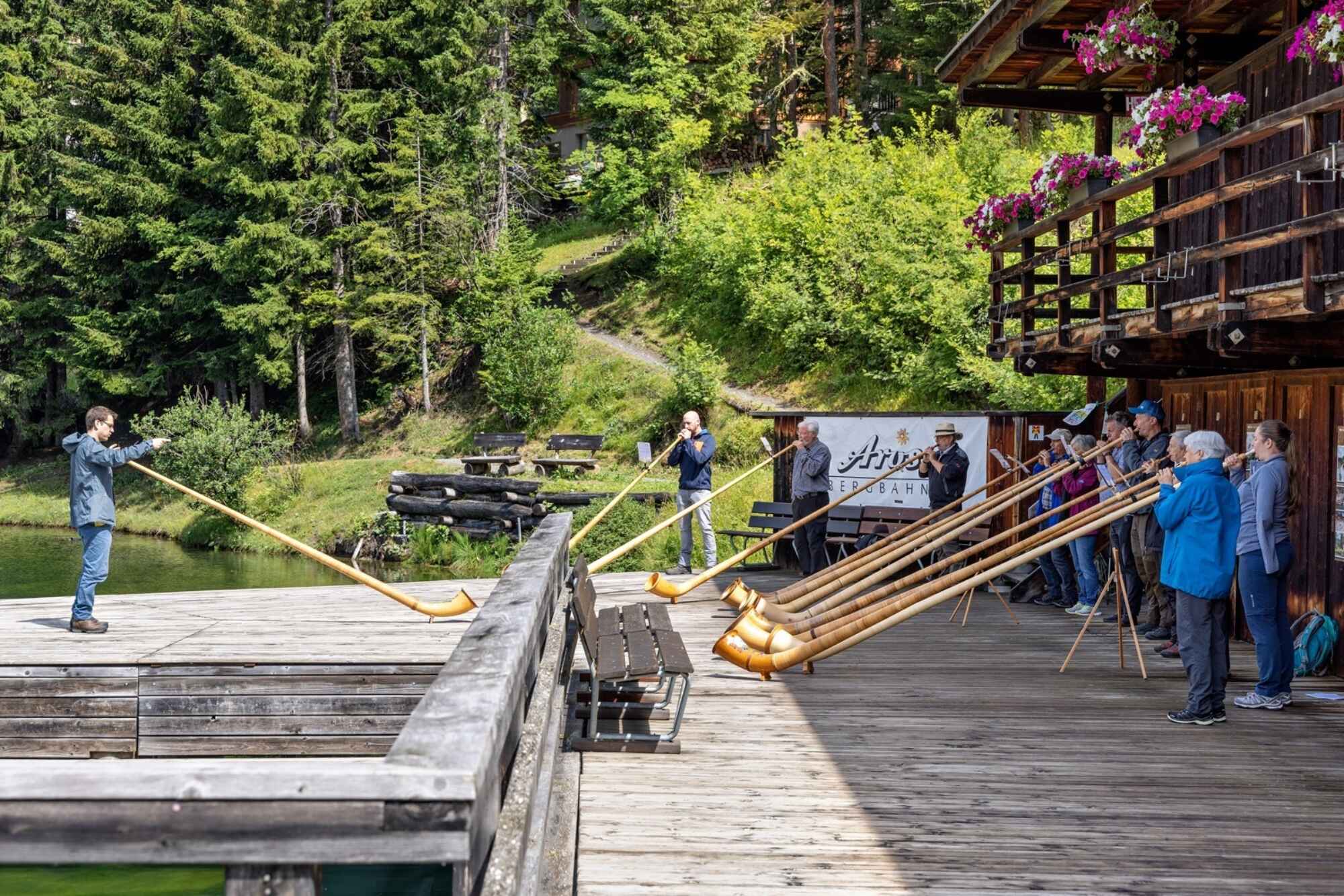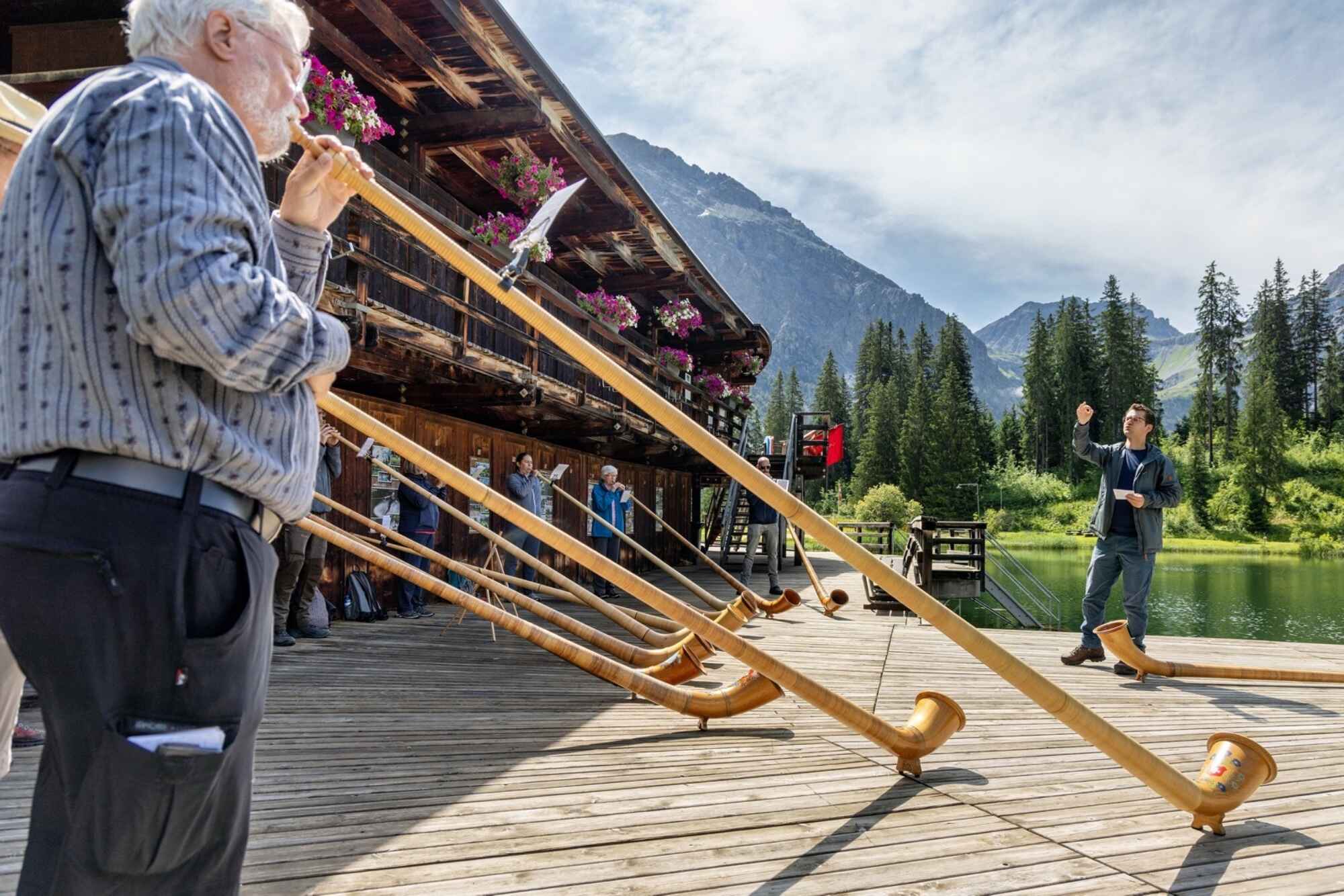 Erfahrene Alphornist:innen, Studierende, fortgeschrittene Laien