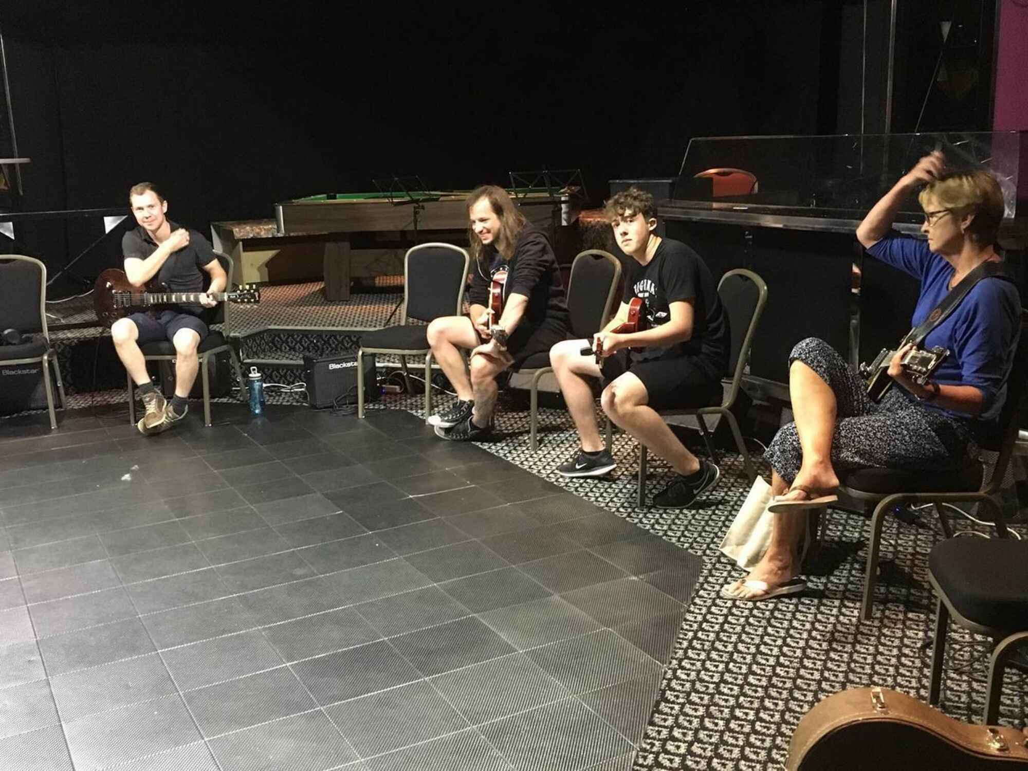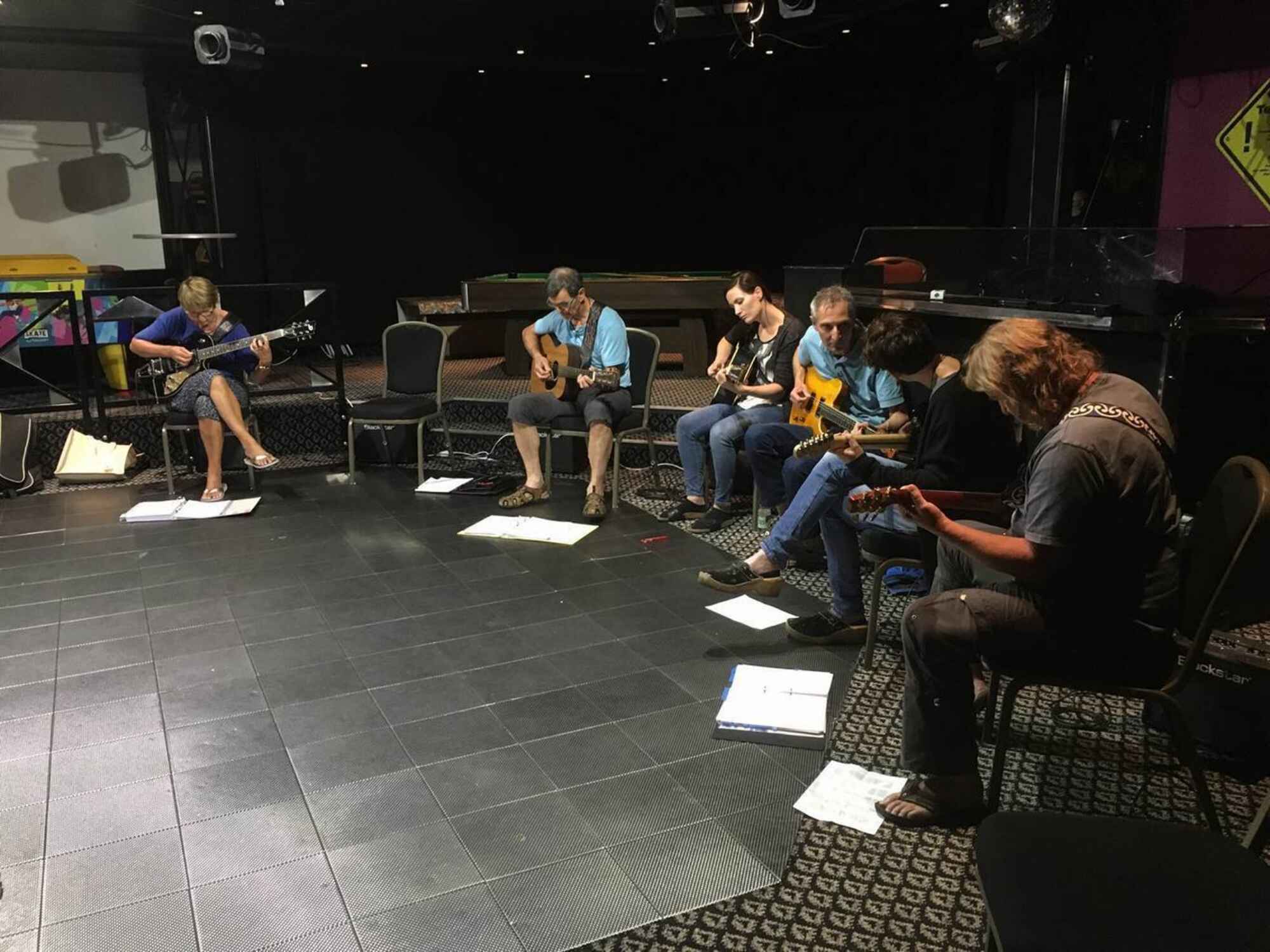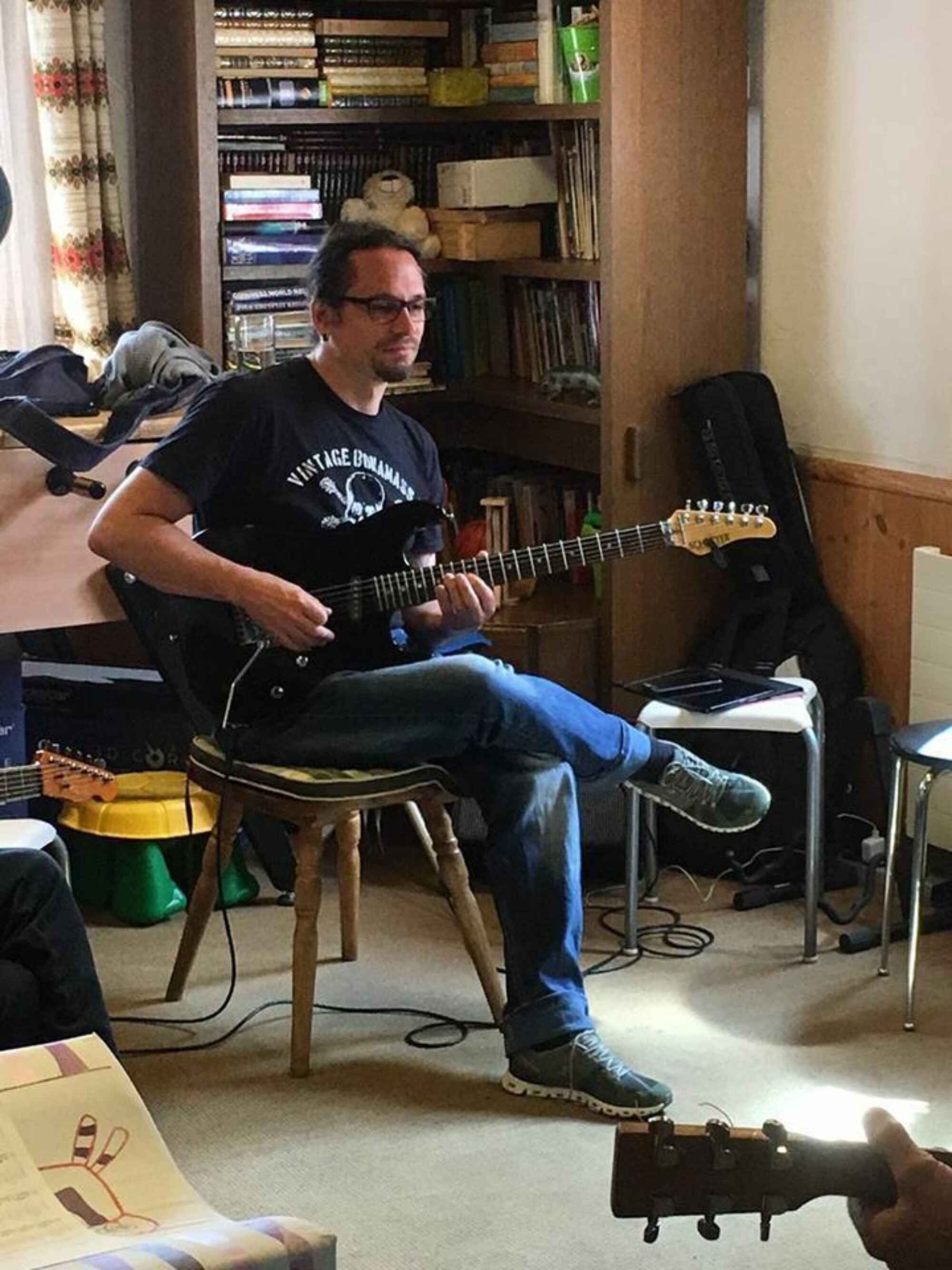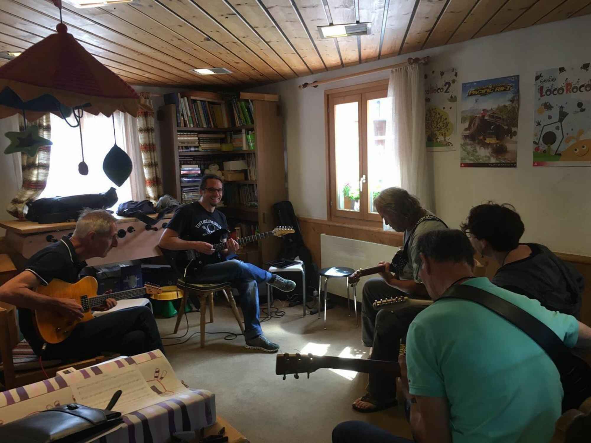 Technik, Rhythmus, Begleit- und Sologitarre, Tonformen, Arrangement, Komposition, Improvisation, Funktionsharmonik, Musiktheorie, ausdrucksstark spielen, üben und jammen mit der GuitArosa-Bandformation (Drum/​Bass/​Gitarren).
