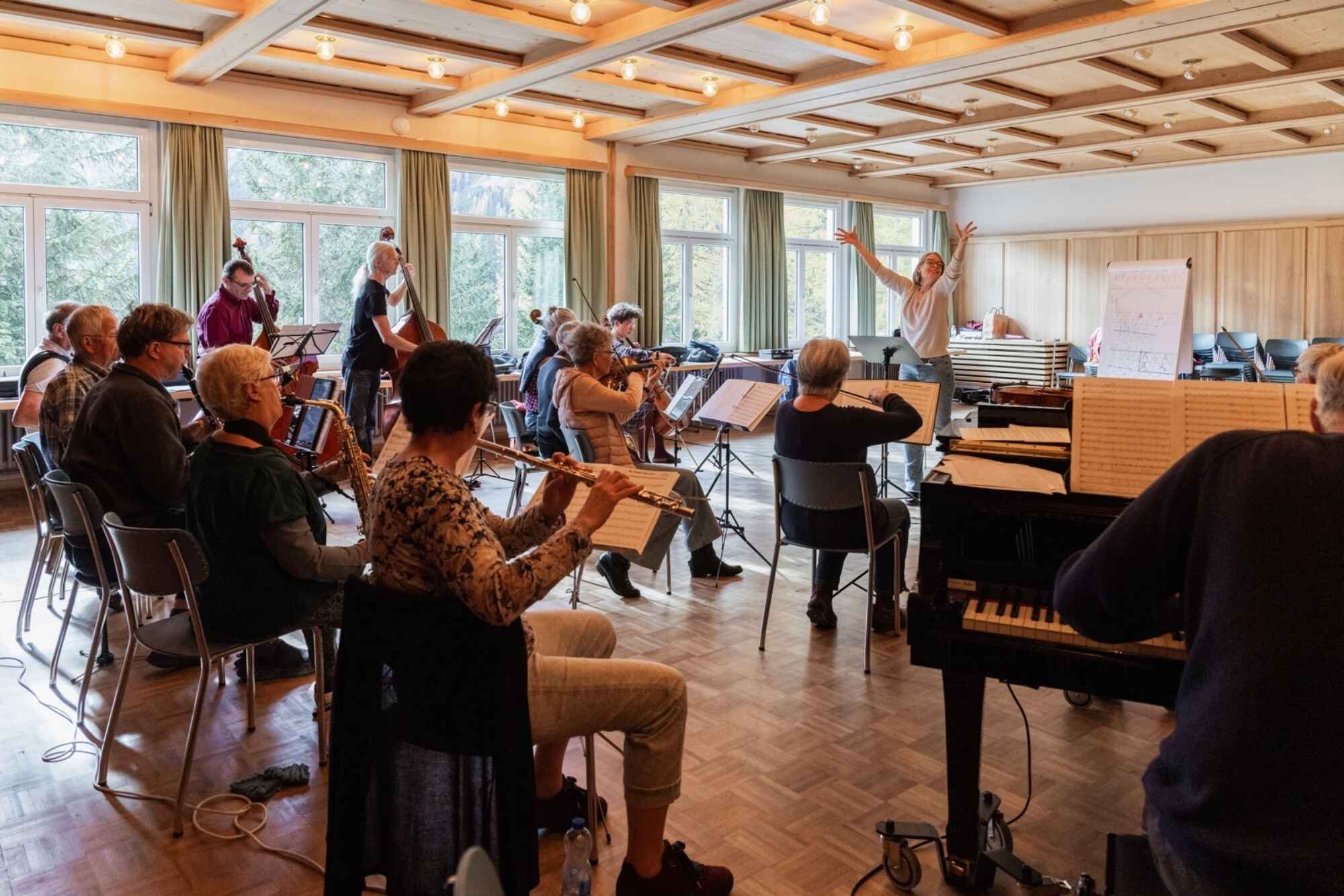 Plauschwoche mit Tiefgang – Ein Klangkörper wird zusammengestellt, in dem jeder und jede willkommen ist, unabhängig von Niveau und musikalischer Ausrichtung. Bedingung ist Freude an der Musik in all ihren Erscheinungsformen (auch freie Improvisation) und die Bereitschaft, sich auf ein Wagnis einzulassen.
