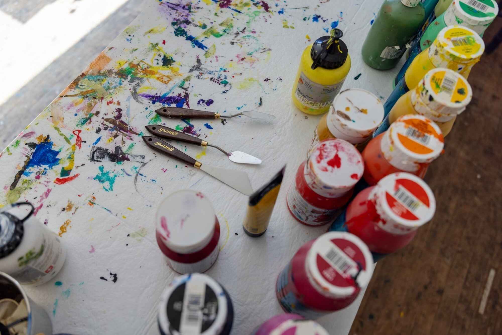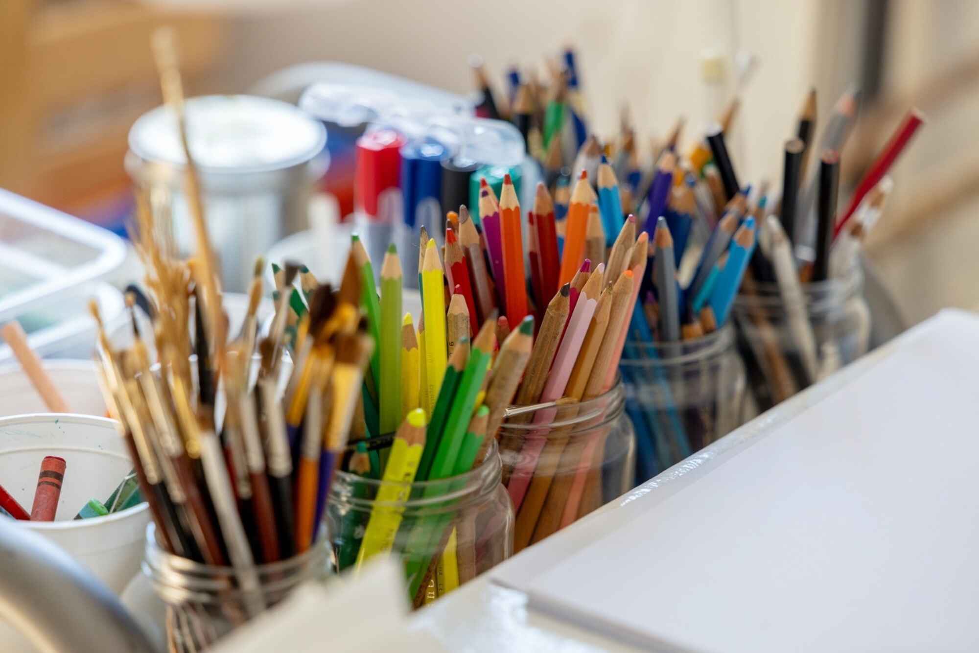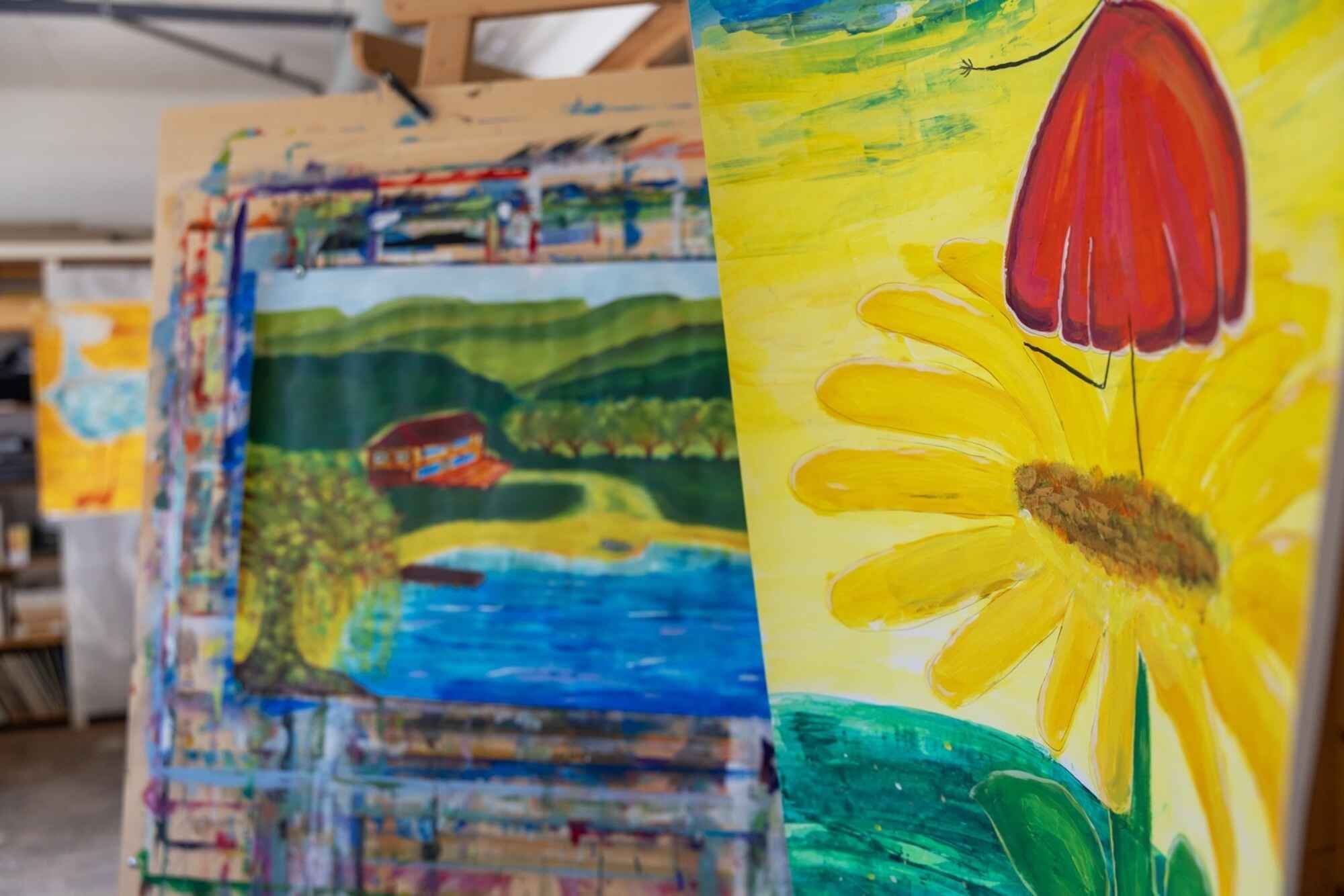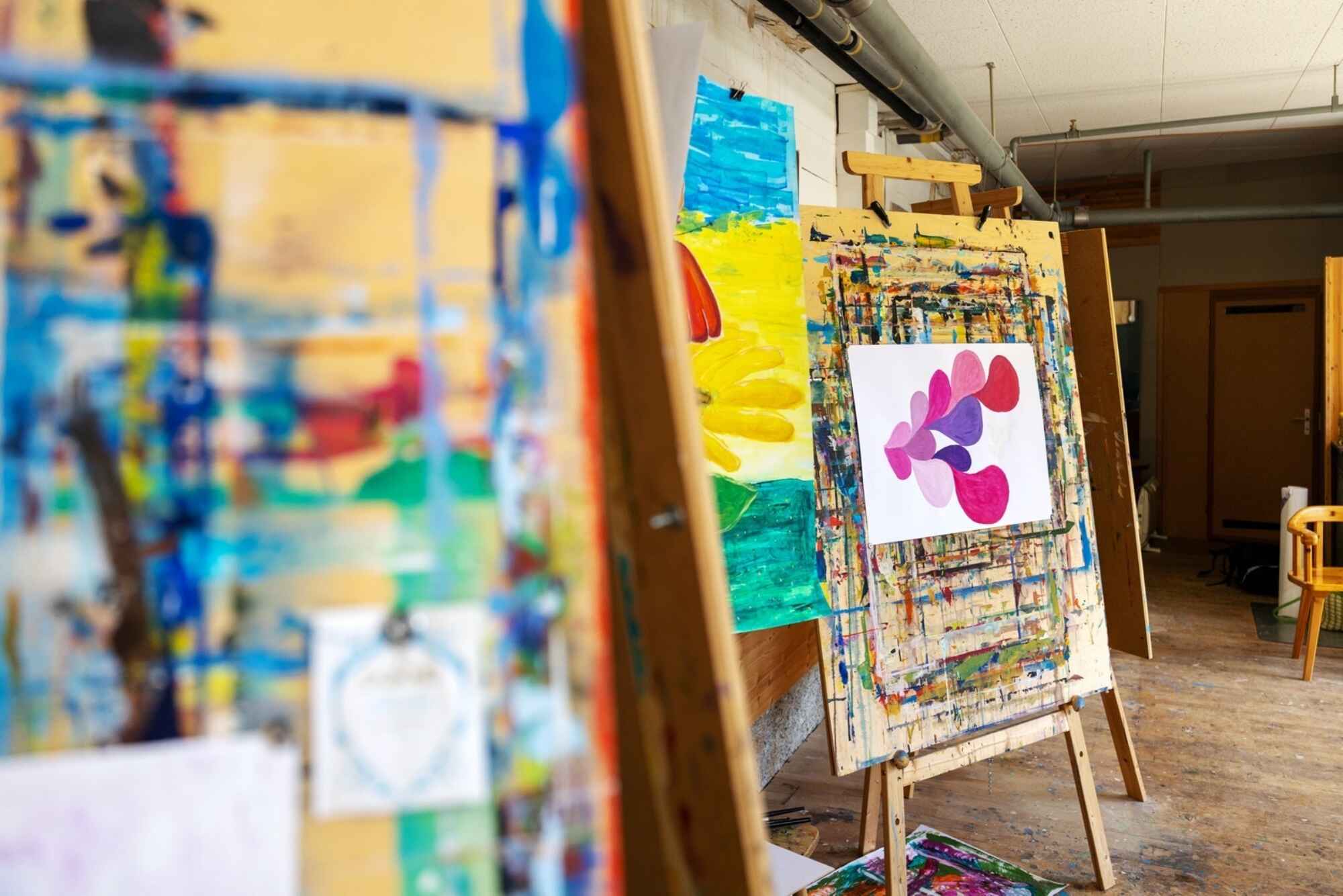 Es gibt Kunstbücher und Pinsel. Farben und leere Blätter. Es gibt Raum und Platz, um herauszufinden, zu entdecken, zu experimentieren – um ganz einfach, einfach zu sein und deine Seele baumeln zu lassen.